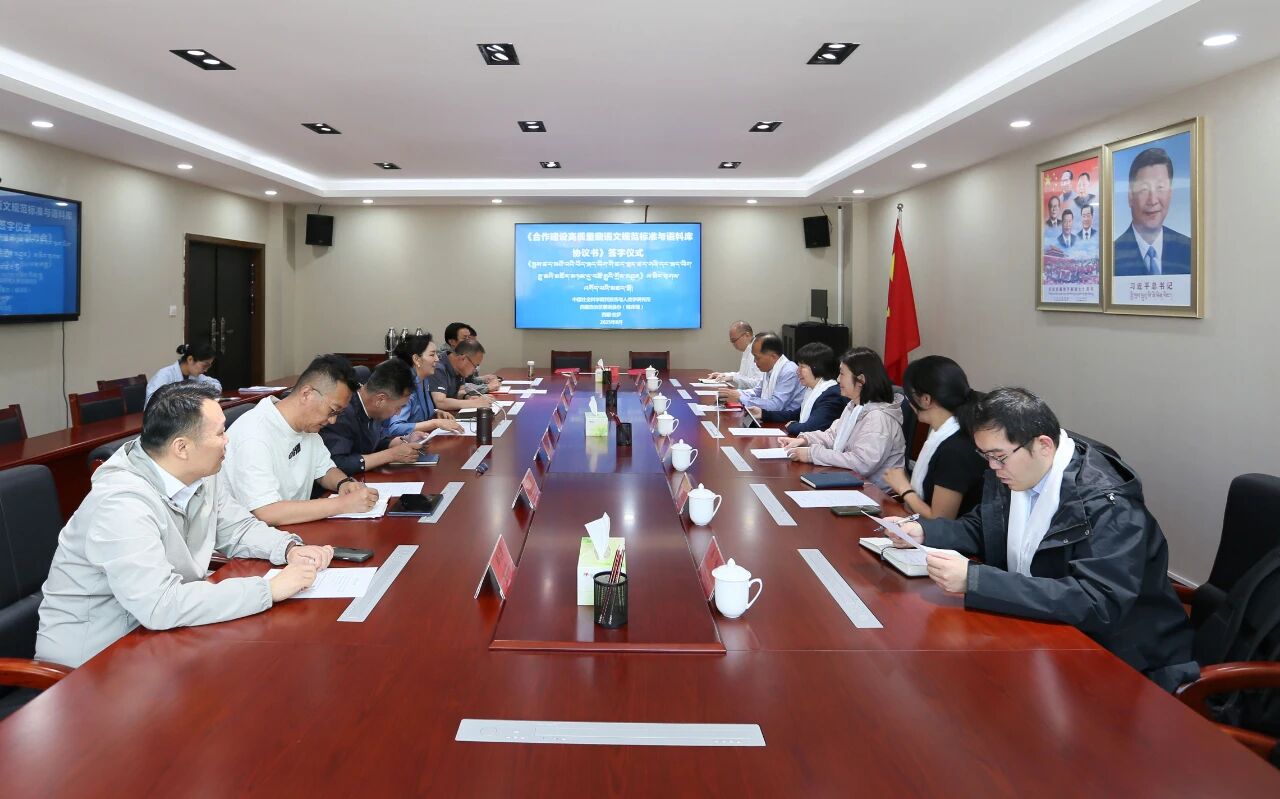 <<བོད་སྐད་ཡིག་གི་སྤུས་ཚད་མཐོ་བའི་ཚད་གཞི་དང་སྐད་མཛོད་མཉམ་དུ་བཟོ་རྒྱུའི་གྲོས་མཐུན>>ལ་མིང་རྟགས་འགོད་པའི་མཛད་སྒོ་ལྷ་སར་སྤེལ་བ།